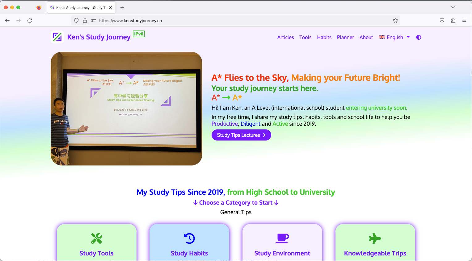 Reason: The Study Tips field outside China was well-developed far before Ken’s Study Journey was founded (from 2016 to 2017), using YouTube (not available in our region), by university students.
